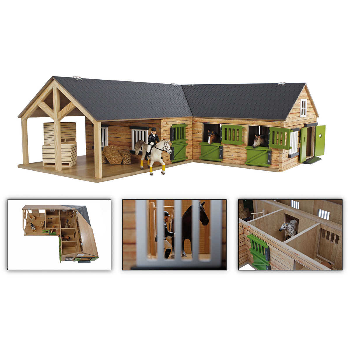 Pferdehof mit 4 Boxen und Lagerraum 1:24, 68x77x27cm.
