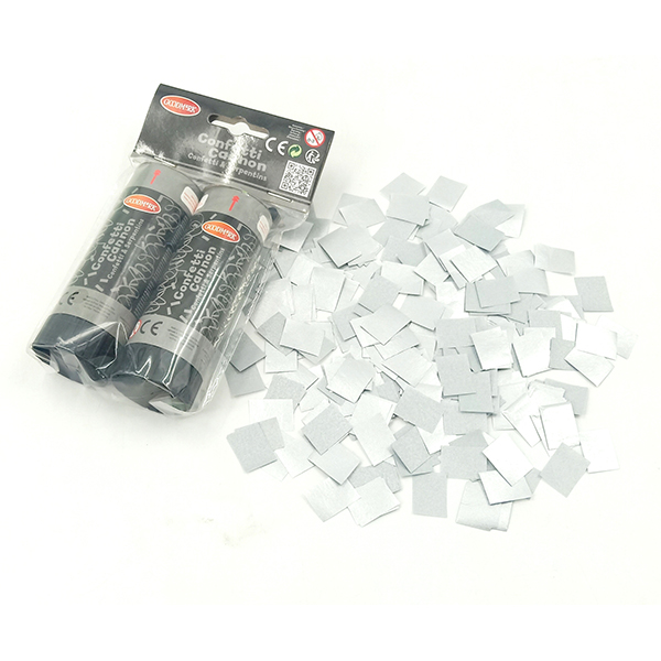 2 Party Kanone Silber 11cm. Inhalt lange und kurze silberne Folienstreifen