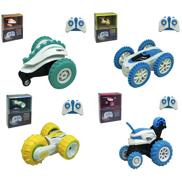 RC Stunt Car 7cm ass. 2.4 Ghz, volle Lenk- und Fahrfunktion, 360 Grad Drehung, mit Panzersteuerung. inkl. 3.7 Volt Batterie für das Fahrzeug, exkl. 2xAAA für die Fernbedienung. Alter 6+.