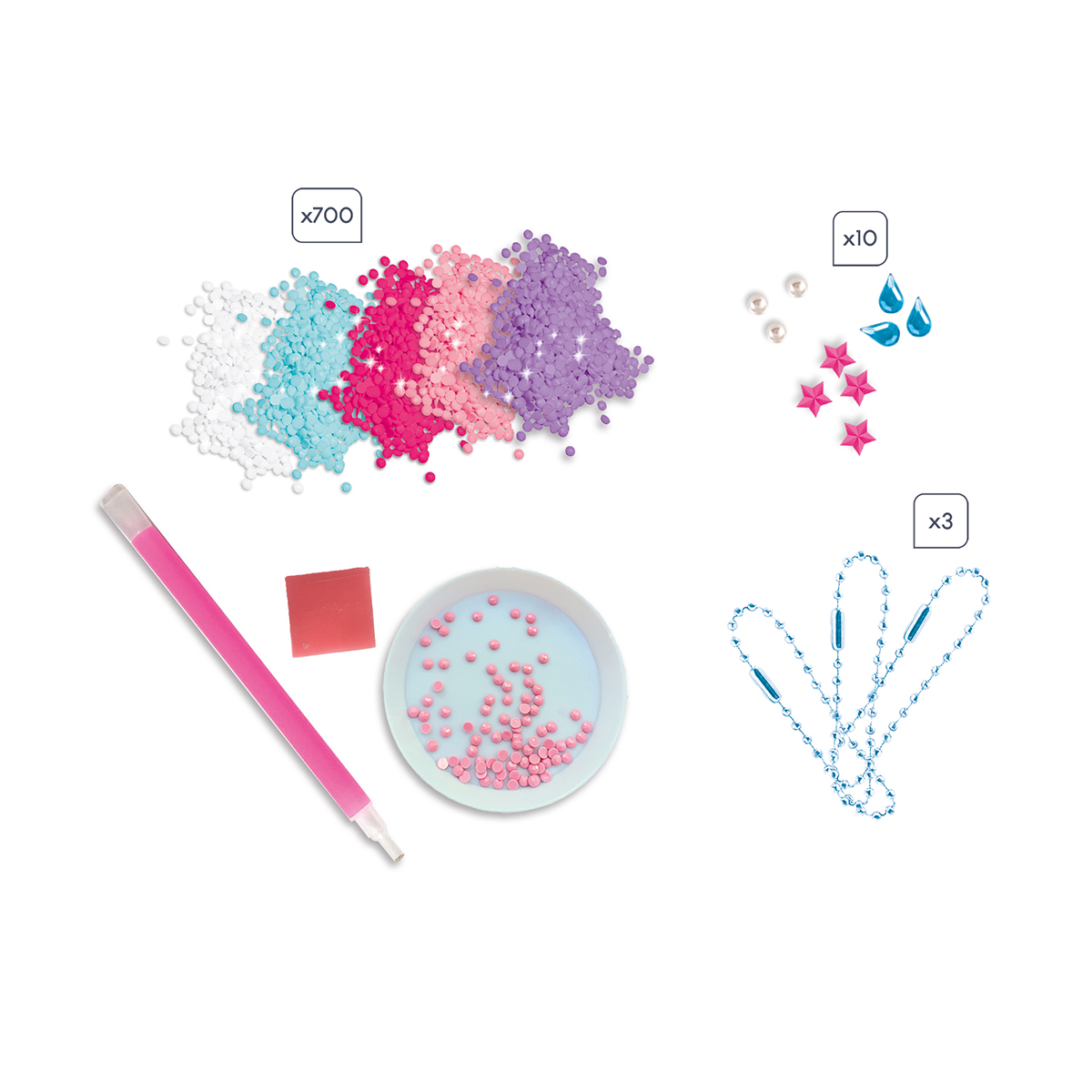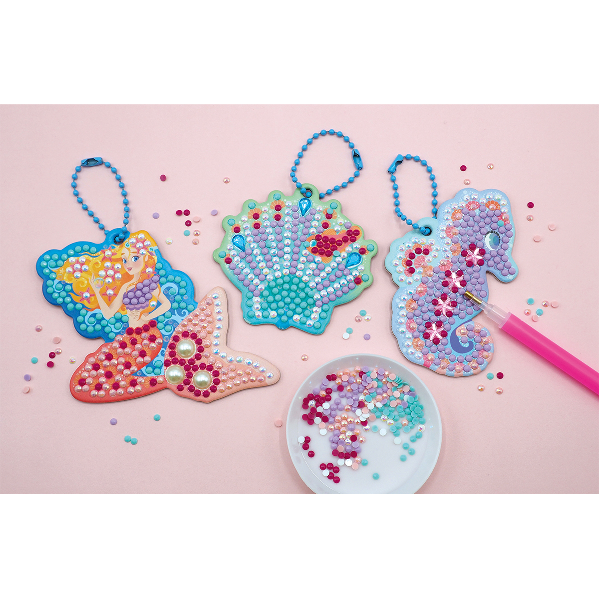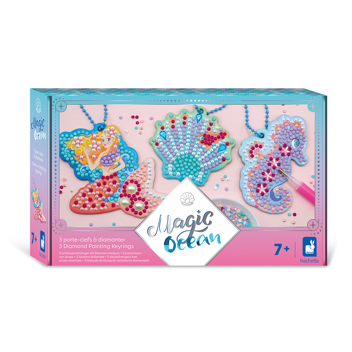 Diese Schlüsselanhänger kann man überall aufhängen! Mit dieser Kreativbox können 3 Meeres-Schlüsselanhänger mit Mini-Strass gebastelt werden. Sie enthält 3 selbstklebende Schlüsselanhänger, 3 Ketten, 10 Strasssteine, 700 Mini-Strasssteine, 1 Stift, 1 Wachsblock und 1 Schale. Anleitungen und Vorlagen sind auf die Innenseite der Box gedruckt. Diese Aktivität fördert Geduld und Kreativität und dauert ungefähr 20 Minuten pro Schlüsselanhänger. Sie ist ideal für Kinder ab 7 Jahren.