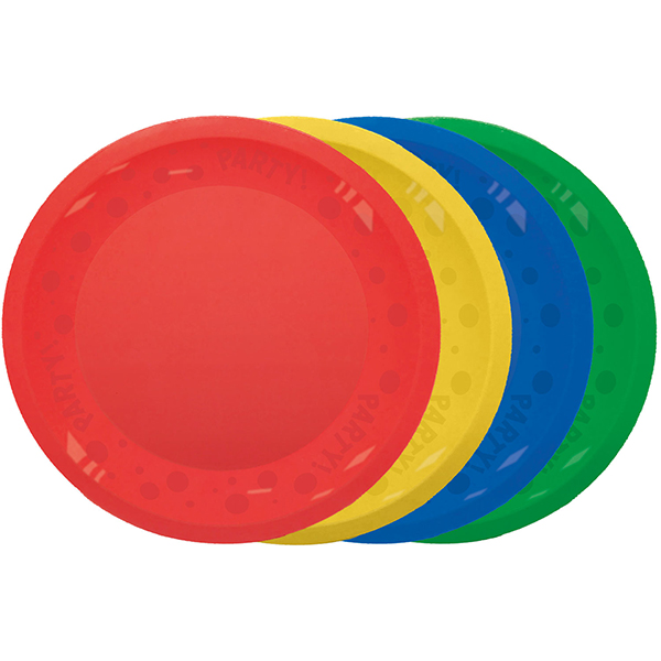 4 Party Teller Bright Dots 21cm - Reusable, aus Plastik. Wiederverwendbar!