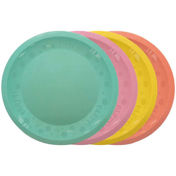 4 Party Teller Pastel Party 21cm - Reusable, aus Plastik. Wiederverwendbar!