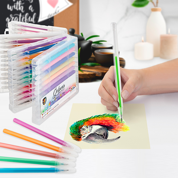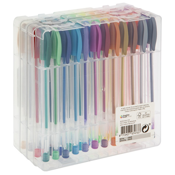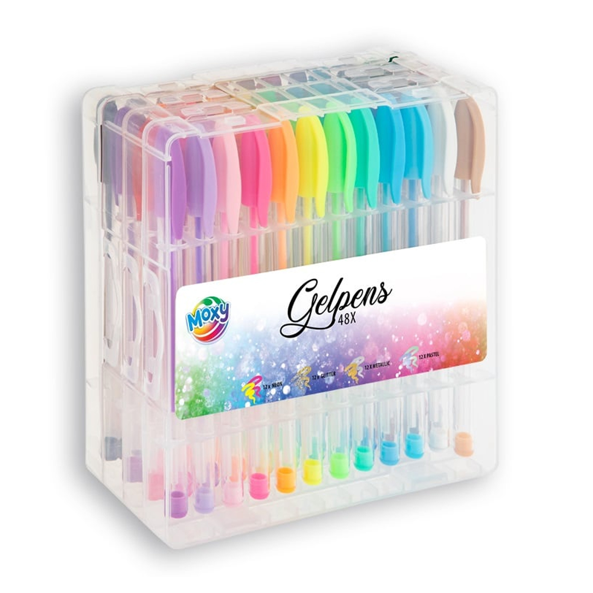 48 Gelstifte (Glitzer, Neon, Metallic, Pastel)in praktischer Plastikdose (15x16x6.5cm).