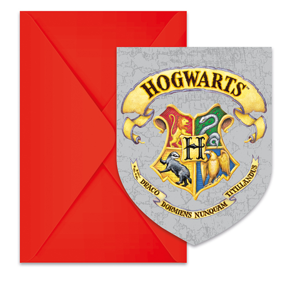 Harry Potter Einladungen mit Umschläge FSC mit alle 4 verschiedenen Hogwarts Design. Pack à 6 Stück.