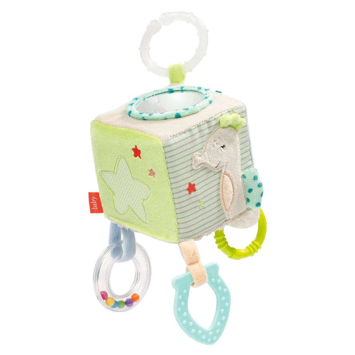 Der kleine Activity-Würfel wird Babys Herz im Nu erobern: Kleine Entdecker werden schnell verstehen was zu tun ist, um die Meeresbewohner klingeln und rasseln zu lassen. Sanfte Farben und verschiedene Anhänger laden zum Spielen & Erkunden ein, Mit Hilfe der Greifelemente lassen sich Tast- und Greifsinn erproben.