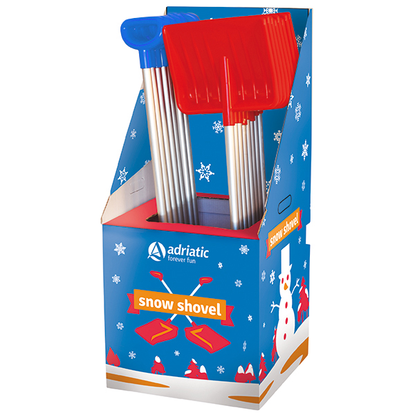 Allroundschaufel rot und blau assortiert im Display mit Alustiel, Länge 87cm.