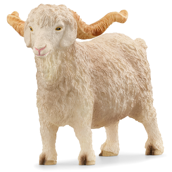 Die Angoraziege stammt aus der türkischen Provinz Ankara (Angora) in Anatolien. Vom Äusseren des Angoraziegenbocks sollte man sich nicht täuschen lassen. Mit seinem seidigen Fell und der kleinen Schnauze sieht er niedlich aus. Er ist aber ein Dickschädel und weiss genau, was er will. Temperamentvoll stemmt er die kurzen Beine in den Boden und ist bereit, jeden Moment loszurennen. Meistens ist er verträglich und versteht sich gut mit den anderen Ziegen. Wenn er sich aber über einen anderen Ziegenbock ärgert, senkt er den Kopf und geht einfach auf ihn los. Lieber Deckung suchen, sonst bekommt man seine langen, geschwungenen Hörner ab!