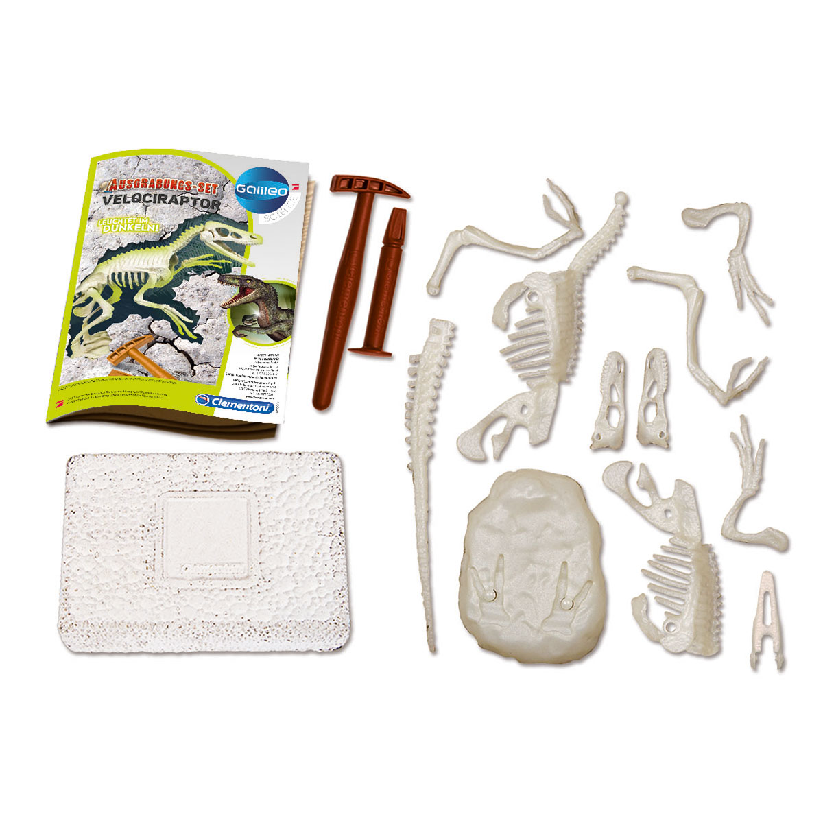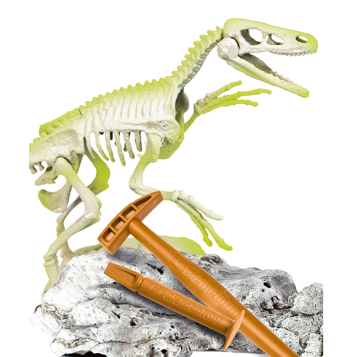 Der Velociraptor, die legendäre prähistorische Kreatur, wird mit diesem Spiel für echte Paläontologen wieder zum Leben erweckt! Hammer und Meissel sind ideale Werkzeuge, um den Ziegel zu bearbeiten und das Skelett dieses unglaublichen Dinosauriers freizulegen! Das Skelett leuchtet im Dunkeln.