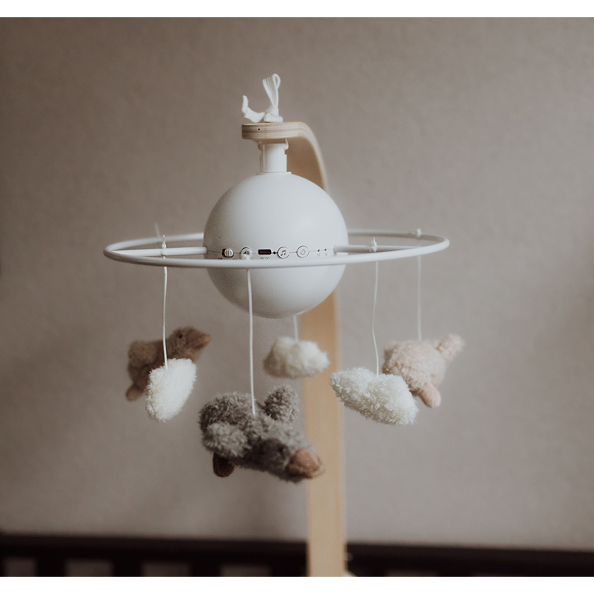 Ein stilvolles Boxmobil, das Ihr Baby beruhigen wird, indem es den süßen Melodien lauscht und seine Freunde beobachtet. Man kann zwischen 4 verschiedenen Melodien wählen, von denen Mozart und Meditation unsere Favoriten sind! Das Boxmobil verfügt über eine Timer-Funktion (15 oder 30 Minuten), ist wiederaufladbar und wird mit einer Fernbedienung geliefert. Dieses Mobile ist nicht nur sehr süß anzusehen und zu hören, sondern stimuliert auch die visuelle Entwicklung Ihres Babys.