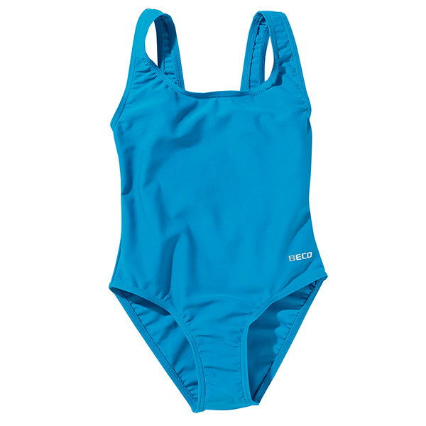 Surfer Girl Badenanzug für Mädchen in türkis, Grösse 104. Runder Rückenausschnitt. Material: 80% Polyamid, 20% Elastan