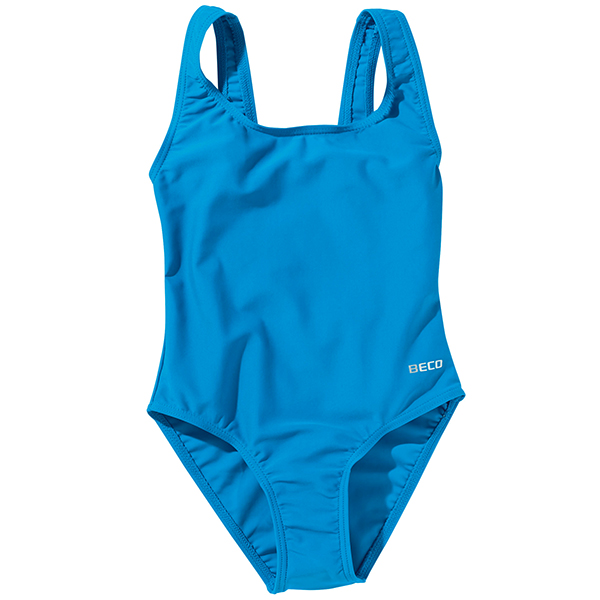 Surfer Girl Badenanzug für Mädchen in türkis, Grösse 140. Runder Rückenausschnitt. Material: 80% Polyamid, 20% Elastan