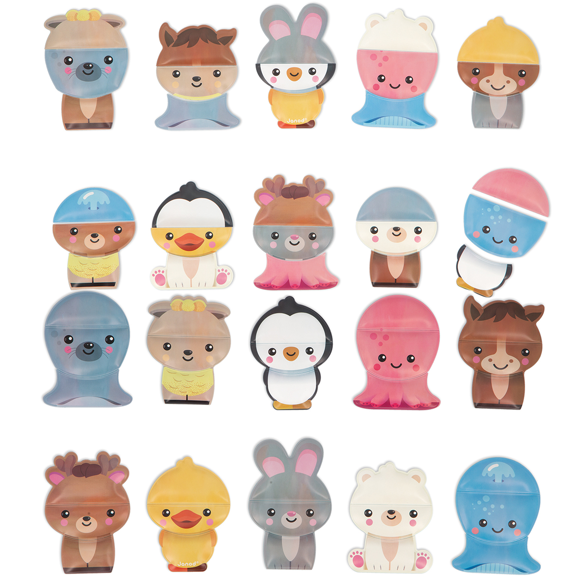 Ein Hasenkopf, Entenaugen und ein Pinguinkörper, wer bin ich? Teilen Sie einen Moment des Lachens und Entdeckens mit diesem hübschen Badeset. Dieses Mix-and-Match-Set besteht aus 30 Teilen und ermöglicht es Ihnen, 10 Tiere bis ins Unendliche zu mischen, damit jedes mehr Spass hat als das andere! Magie, tränke die Stücke in Wasser, sie schweben und halten das Steingut fest! Ideales Badespielzeug für Kinder ab 2 Jahren.