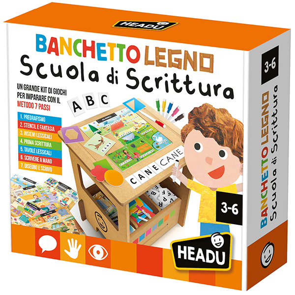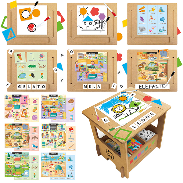 Ein praktisches Bankett aus Holz, das für Kinder im Vorschulalter konzipiert wurde, um verschiedene Aktivitäten in völliger Autonomie durchzuführen. Kinder lernen mehr als hundert Wörter zu schreiben, zu zeichnen und zu lesen mit der originellen Sieben-Schritte-Methode.