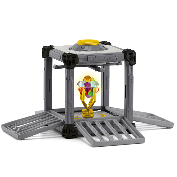 BattleCave Superkristalle. Zur Verteidigung steht in jedem BattleCave ein starkes Creature bei! Kann mit anderen BattleCaves zu grossen Festungen gestapelt und gestellt werden. Jede Wand kann individuell ausgetauscht werden und der Würfel so neukonfiguriert. Der Superkristall passt in die Fassung in der Mitte des BattleCaves. Alle 5 Weltenkristalle ergeben in einem kniffeligen Puzzel den Superkristall. Um diesen Battle Cave zu öffnen, muss erst der Tresor auf dem Dach mit der richtigen Kombination geknackt werden!