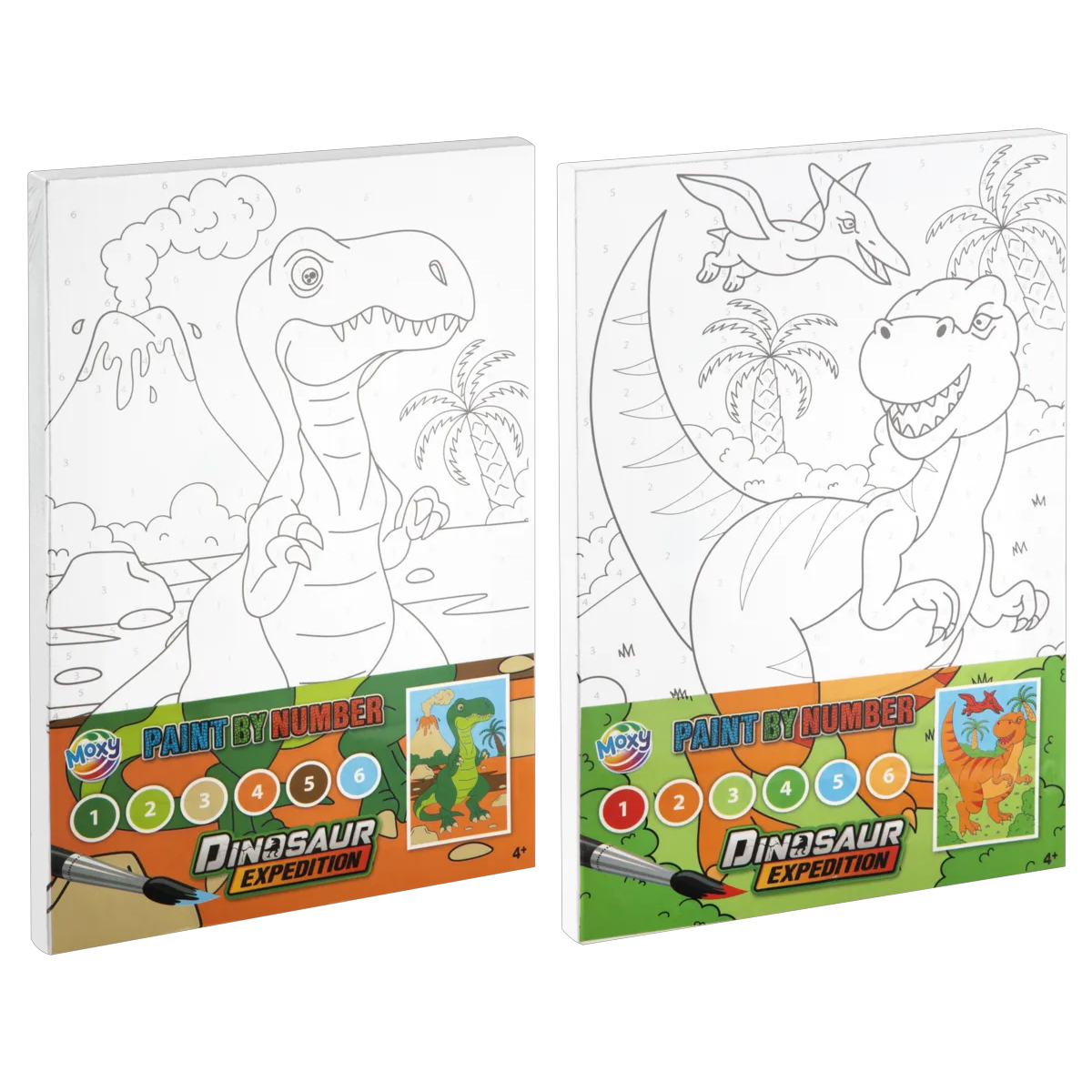 Malen nach Zahlen Bild Dinosaurier inkl. 6 Farben und Pinsel, 2-fach assortiert, 29.7x19.5cm.