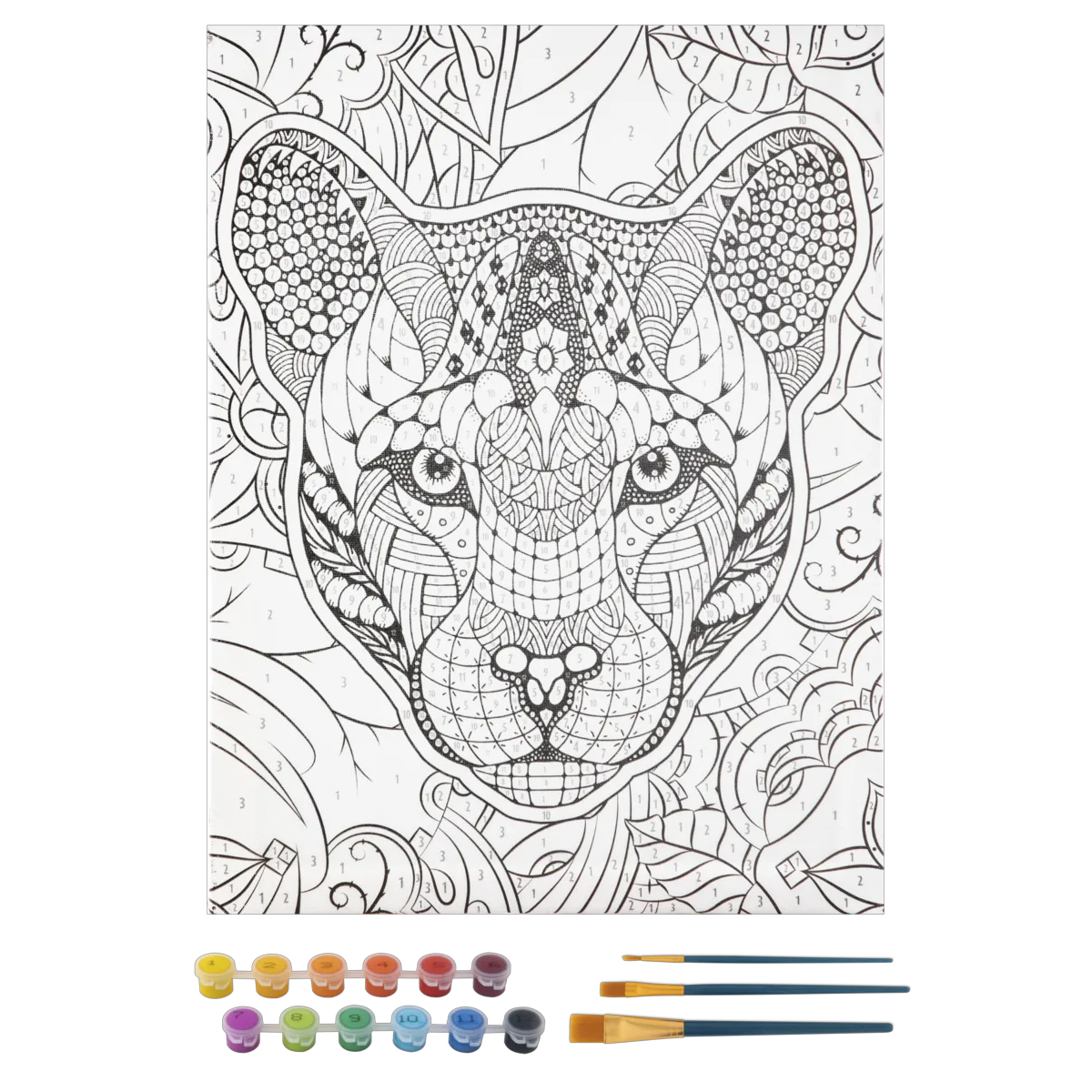 Malen nach Zahlen Canvas Bild 30x40cm Tiger inkl. 12 Farben und 3 Pinsel.