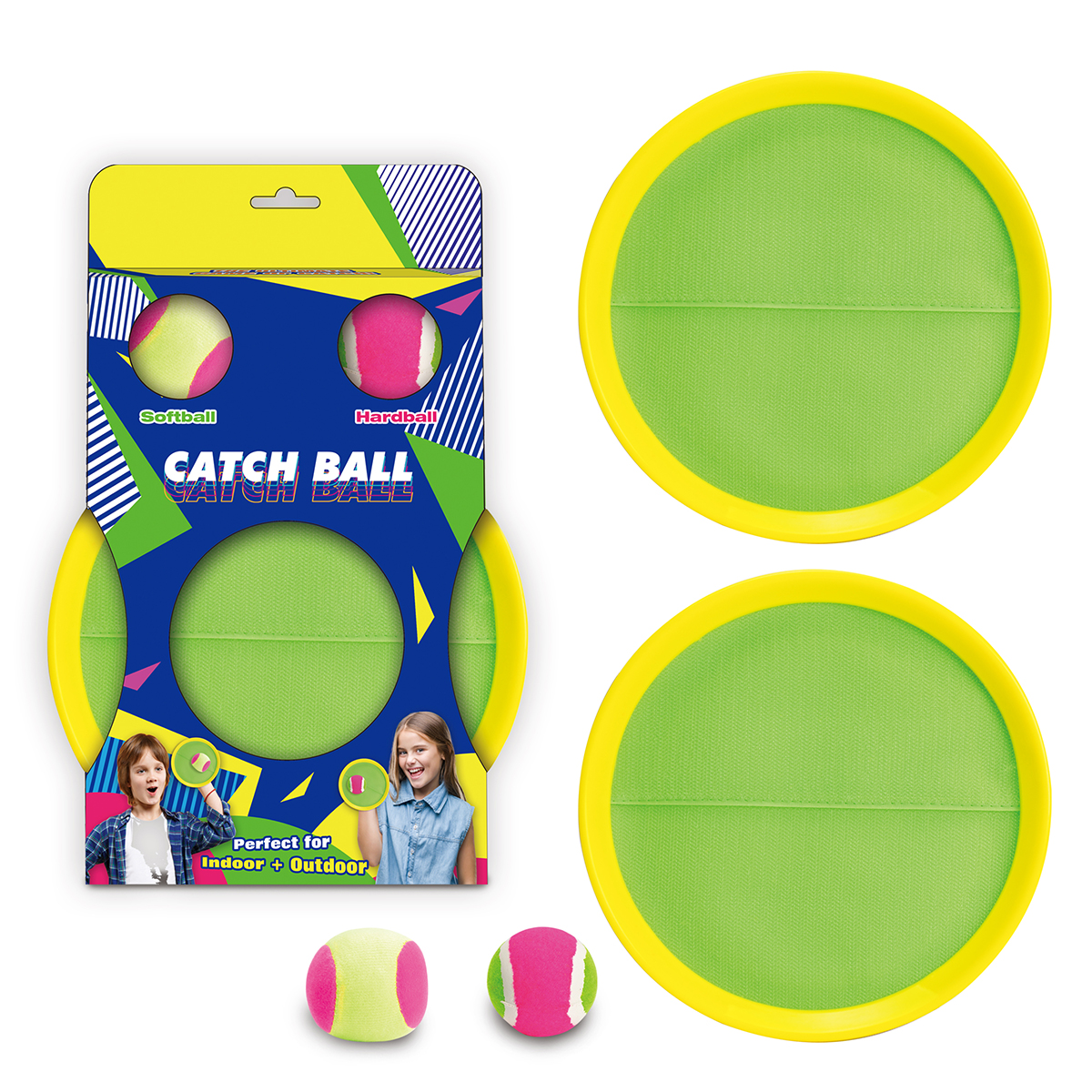 Catch Ball Set mit zwei Bällen, ein Soft- und ein Hartball.