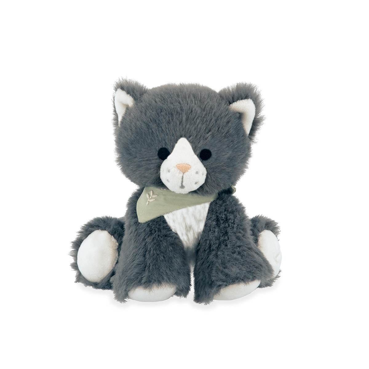 Chamallow ist ein kleines Fellbündel voller Liebe. Baby wird sein weiches Fell lieben und sofort Lust zum Kuscheln bekommen. Er wird der ideale Gefährte für Ihr Baby sein. Sein kleines blaues Halstuch - Emblem von Kaloos Kollektion verleiht ihm eine liebenswerte und moderne Optik. Mit seinem weichen Körper und seinen kleinen Pfoten ist er der ideale Gefährte, um das Greifen zu trainieren. Dieser 14 cm grosse Plüschkater wird Baby in eine Welt voller Liebe entführen.