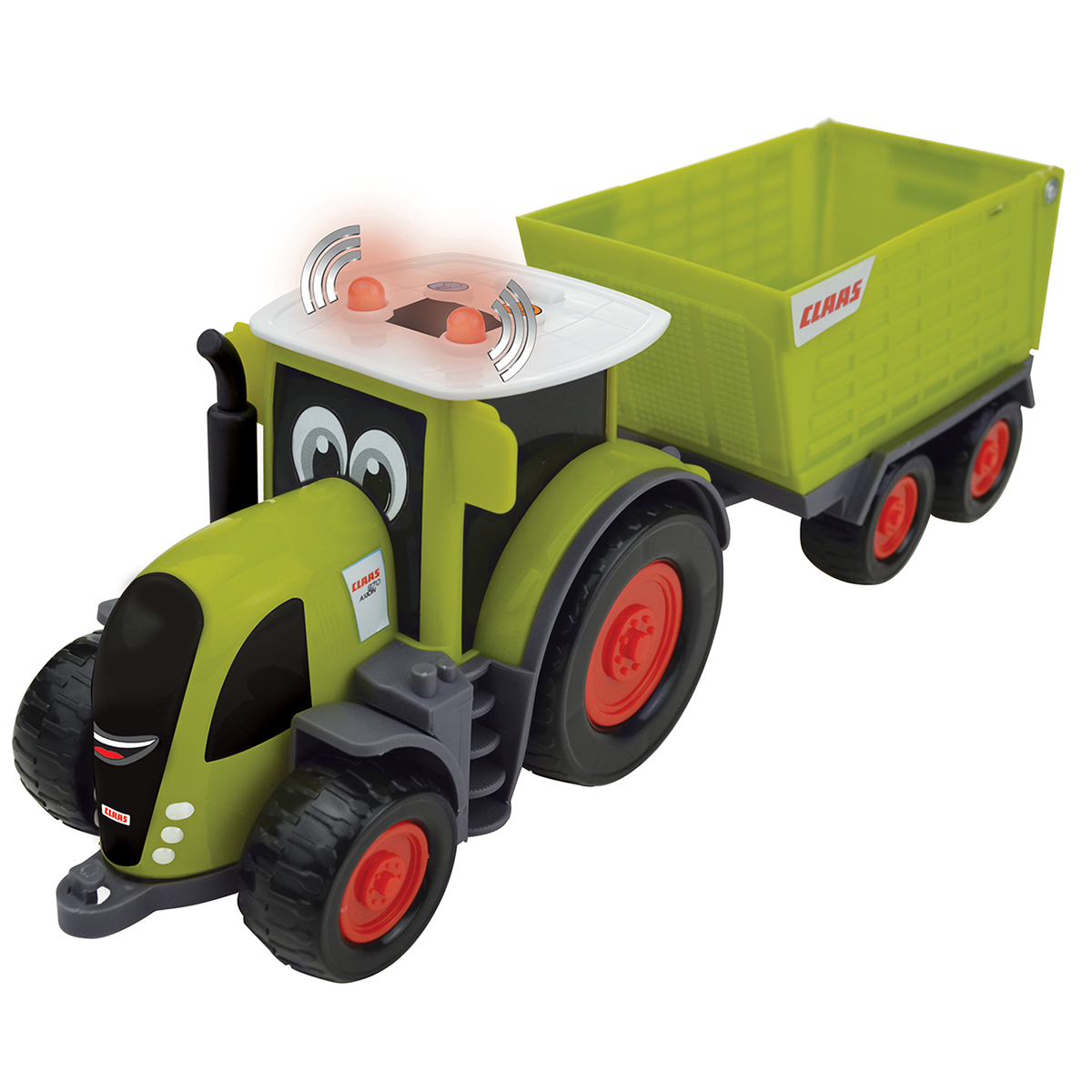Claas Kids Axion 870 + Cargos 750, Traktor mit Anhänger 28cm, Anhängerklappte kippbar, Try me Funktion, Start-, Motorgeräusch, Licht. Inkl. Batterien.