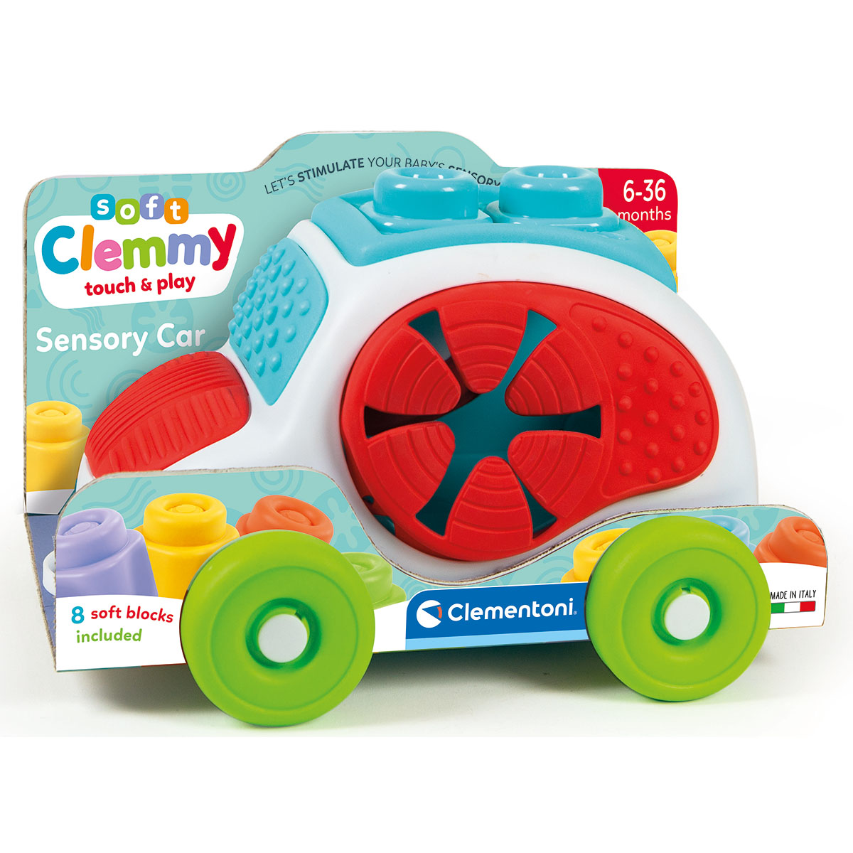 Clemmy - innovatives Auto mit weichen Einsätzen wie den Clemmy-Blöcke, ein anregendes Erlebnis, das Spiel und sensorische Entdeckung miteinander verbindet. Die weichen Einsätze können erkundet und berührt werden, um die verschiedenen Reliefmuster und -formen zu entdecken. Stimuliert den Tastsinn und manuelle Fähigkeiten. Das Dach des Autos kann als Unterlage für das Stapeln der Clemmy-Blöcke verwendet werden. Es öffnet sich und wird zu einem praktischen Fach für die Aufbewahrung der Bausteine. Die weichen Seitenfenster ermöglichen das Spielen und Einsetzen der Blöcke in das Auto sowie das wieder Herausnehmen. Sowohl das Auto als auch die Blöcke können auch in der Spülmaschine gewaschen werden.