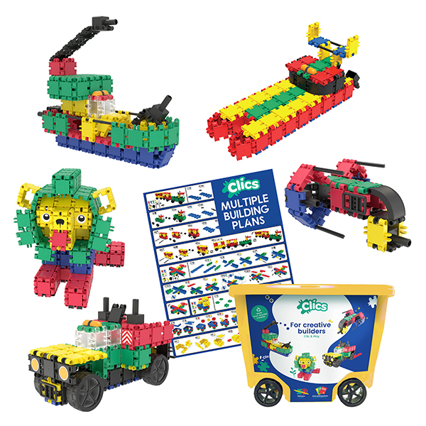 Rollbox 560 Teile - 463 Clics + 97 Zubehör + Stickers + Kartenset. Toller Inhalt für 20 verschiedene Konstruktionen.