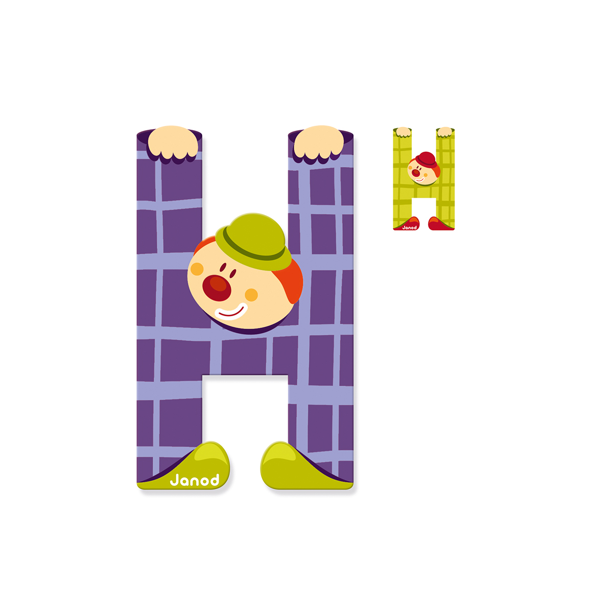 Buchstabe Clown H 5.5x0.7x9cm 10 gr, Farben assortiert, aus Holz