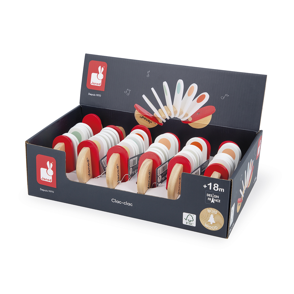 Welch ein Rhythmus! Dieses hübsche Holz-Klack-Klack ist ideal, um die Kleinsten an ihre ersten Klangspiele heranzuführen. Es liegt gut in der Hand und hilft dem Kind, Geräusche, Rhythmus und Bewegung zu entdecken. Ein Holzspielzeug, das die Feinmotorik, die Koordination und das musikalische Bewusstsein fördert. Hergestellt aus Holz. Für Kinder ab 18 Monaten.