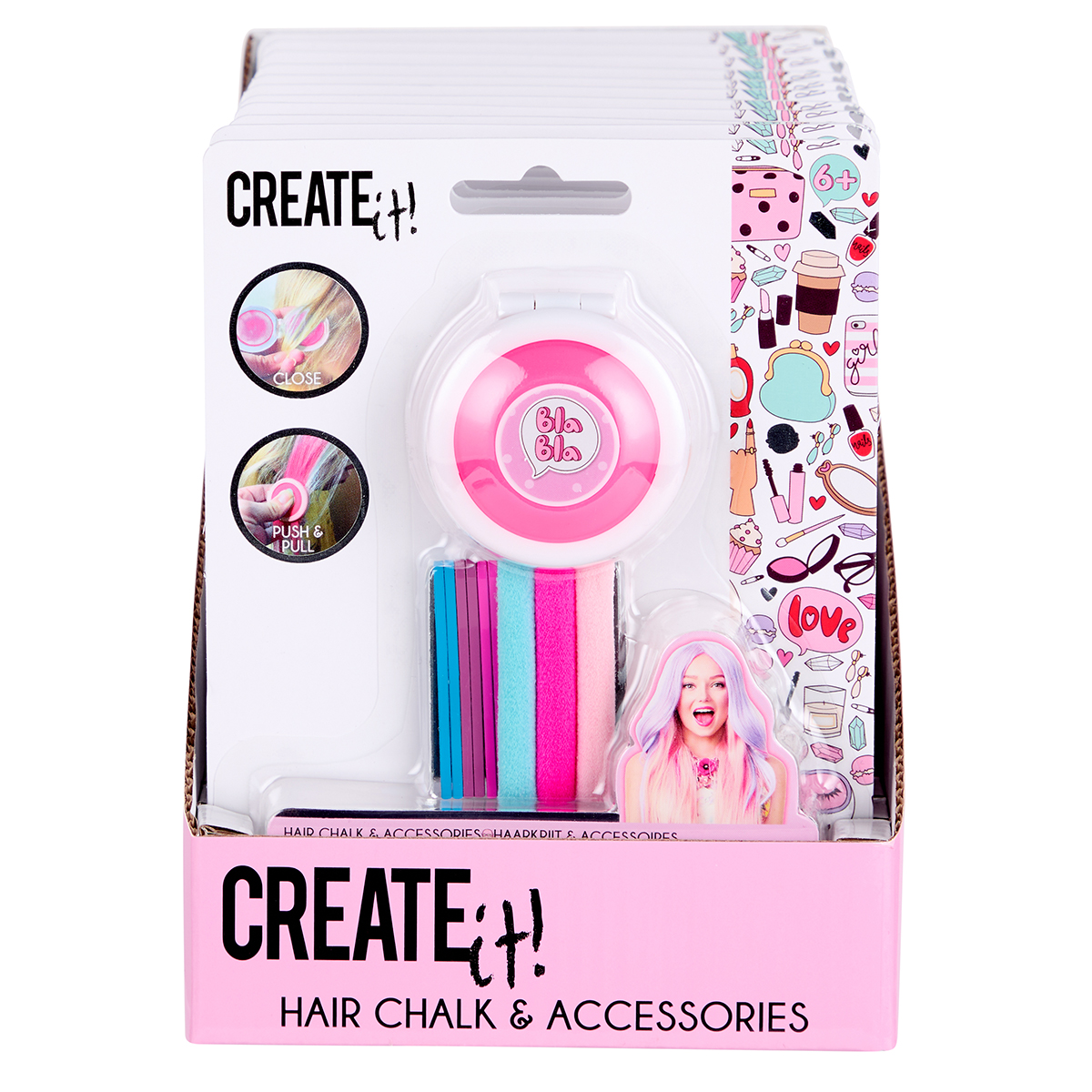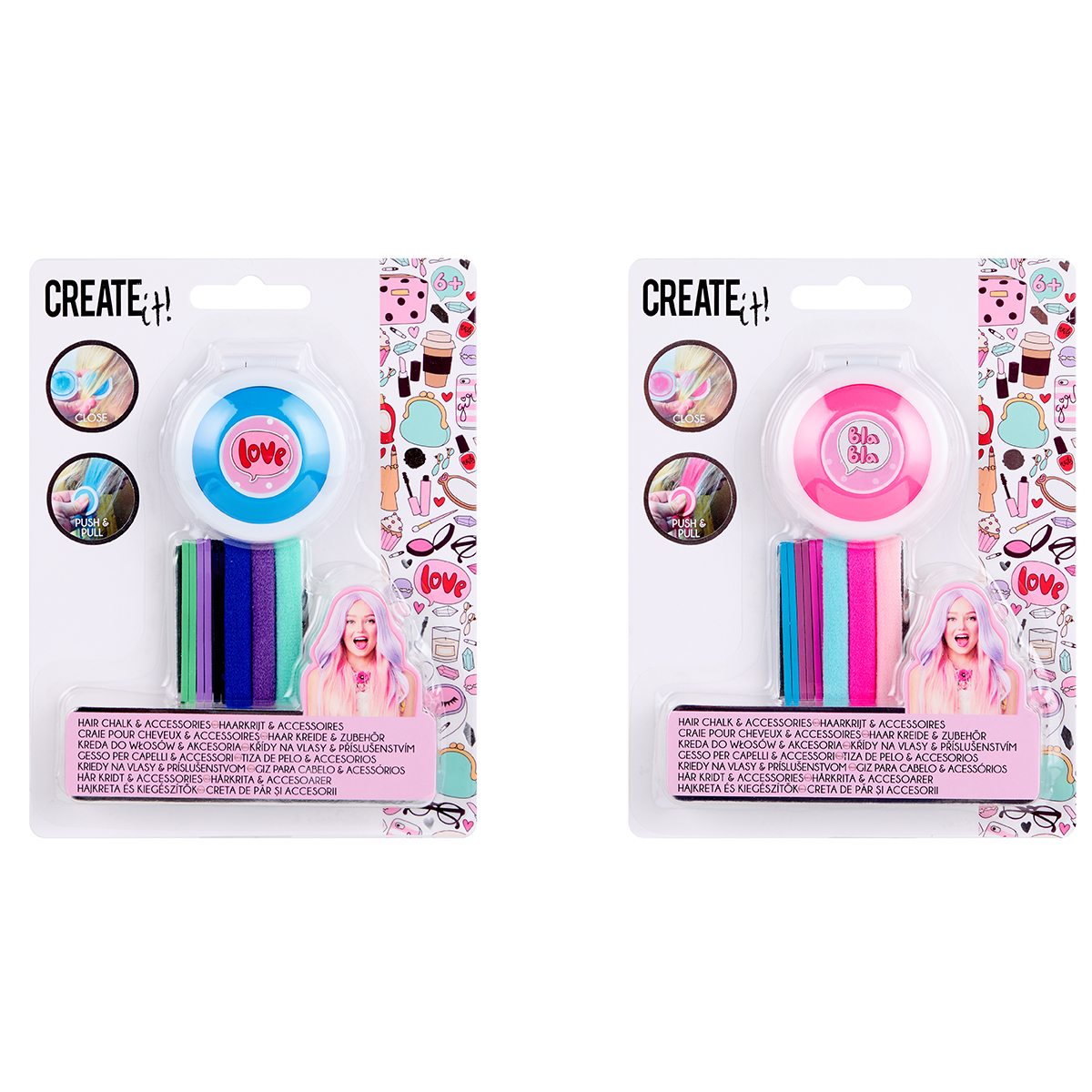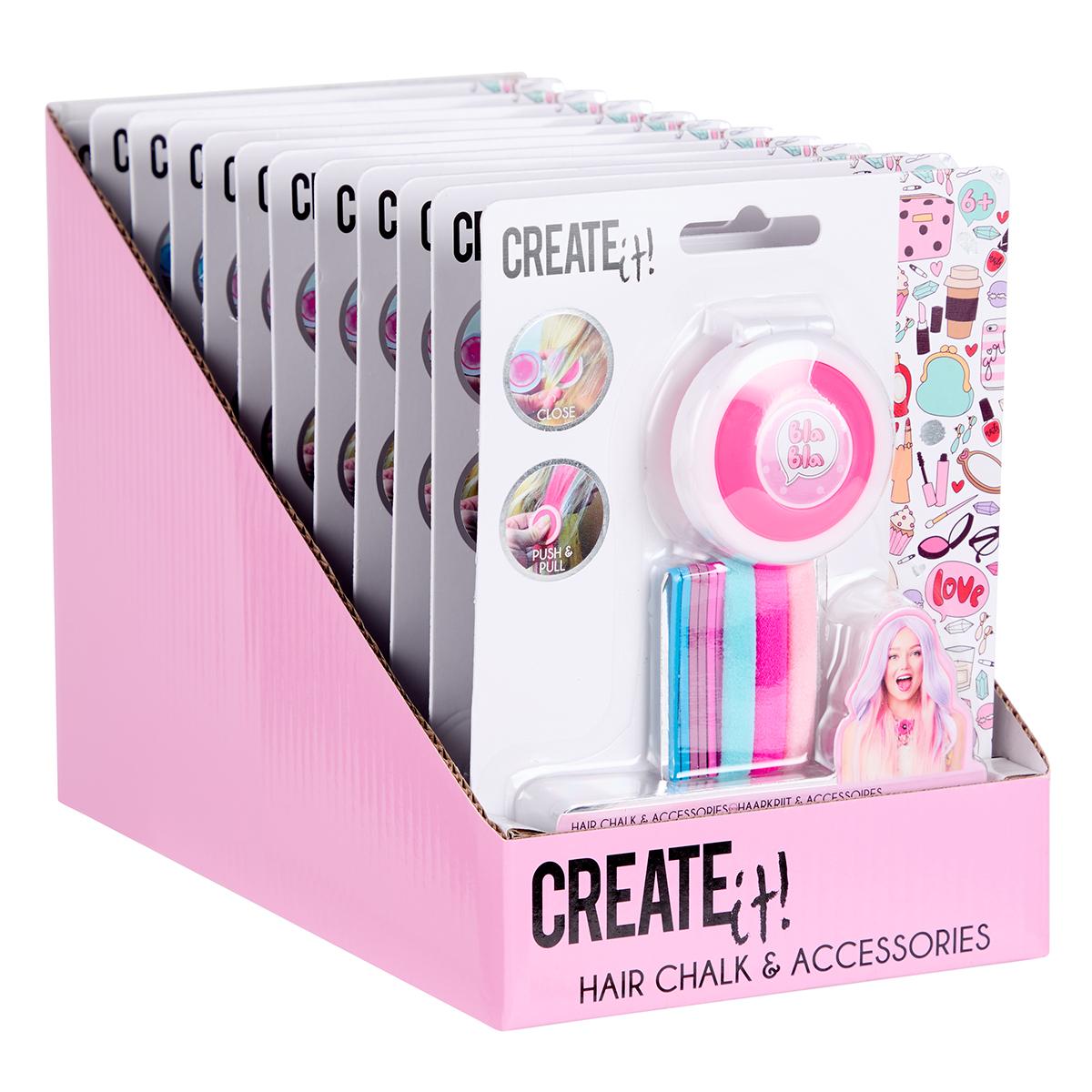 Haarkreide mit Zubehör 2-fach assortiert im Display.