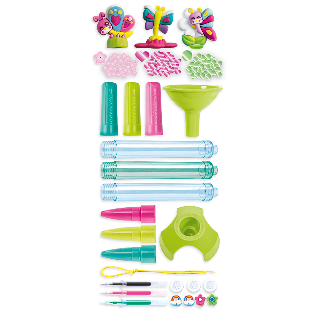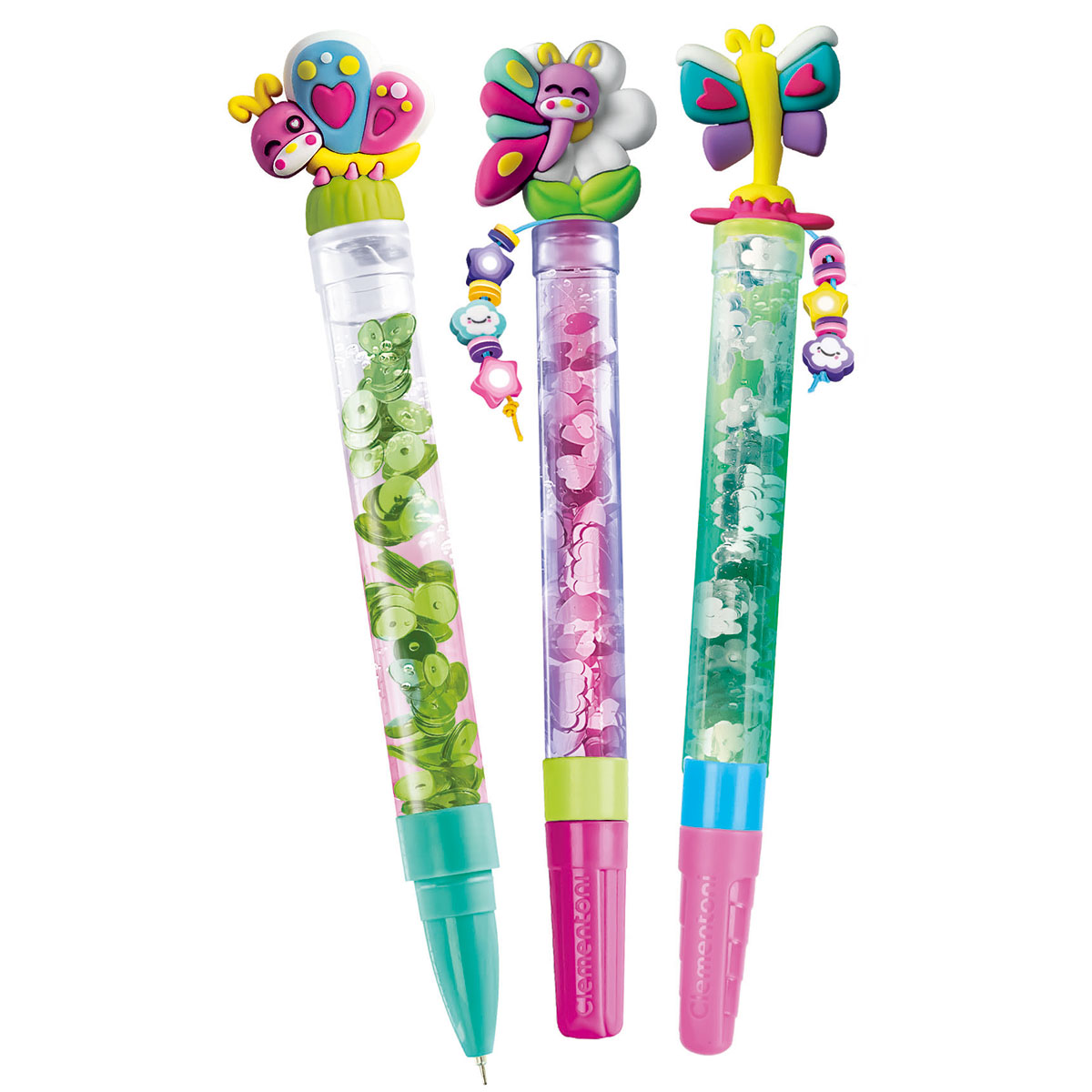 Deine Stift-Kreationen - Fantasy. Ein originelles Kreativset, mit dem man 3 Stifte zusammenstellen und mit verschiedenen Dekorationen personalisieren kann, indem man aus 3 verschiedenen Themen auswählt. Ein praktisches und reichhaltig sortiertes Set, das pro Set Folgendes enthält: 3 Stifte, 3 verschiedenfarbige Tinten, 3 Figuren und alle Werkzeuge, um sie herzustellen. Ein neues IDEA-Set, mit dem die Kinder ihre Stifte mit zahlreichen Accessoires und Dekorationen gestalten und personalisieren können.