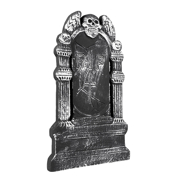 Grabstein RIP mit fliegendem Schädel bedeckt 50cm - gruselige Dekoration für Halloween.