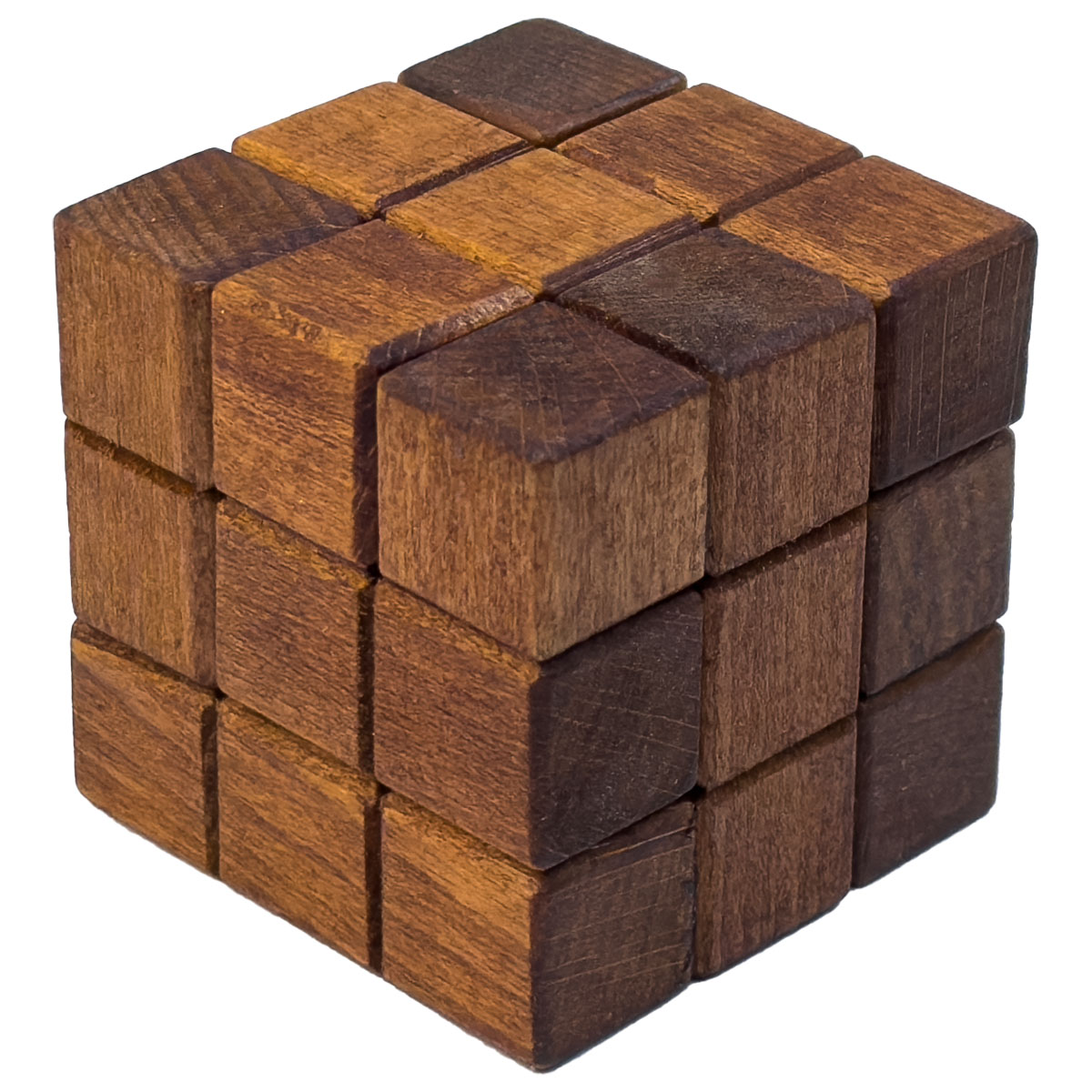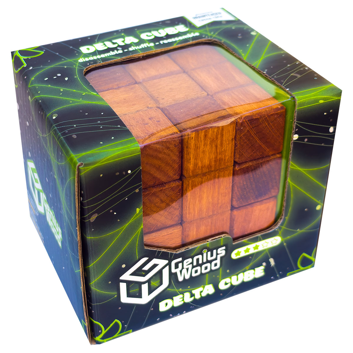 Delta Cube 6x6x6cm aus Holz. Zerlegen, mischen und den Würfel wieder zusammensetzen. Ein Würfel aus vier Teilen, der vom Buchstaben Delta des griechischen Alphabets inspiriert ist. Es ist amüsant, dass die Teile in einer sequentiellen Ordnung verwendet werden.