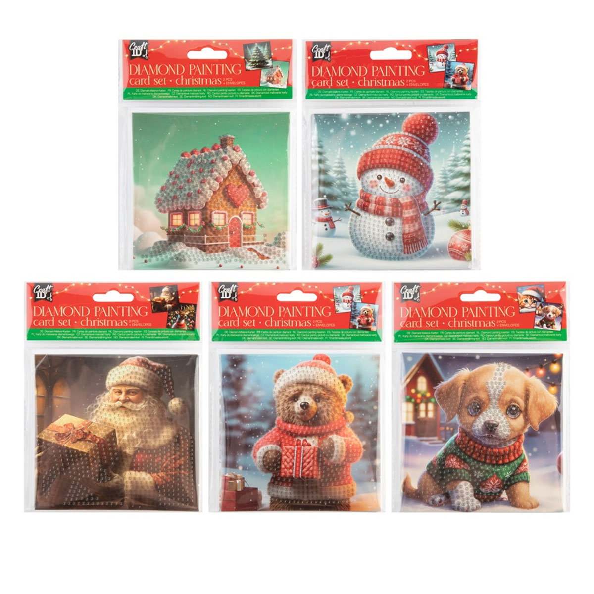 Weihnachtskarten mit Diamantmalerei, 2 Stück, 13 x 13 cm, 4-fach assortiert.