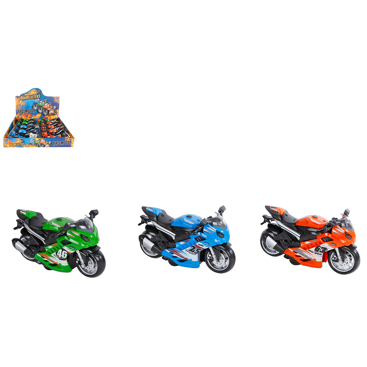 Die Cast Motorrad 14.5cm mit Licht und Sound, im Display assortiert mit Rückzugmotor.