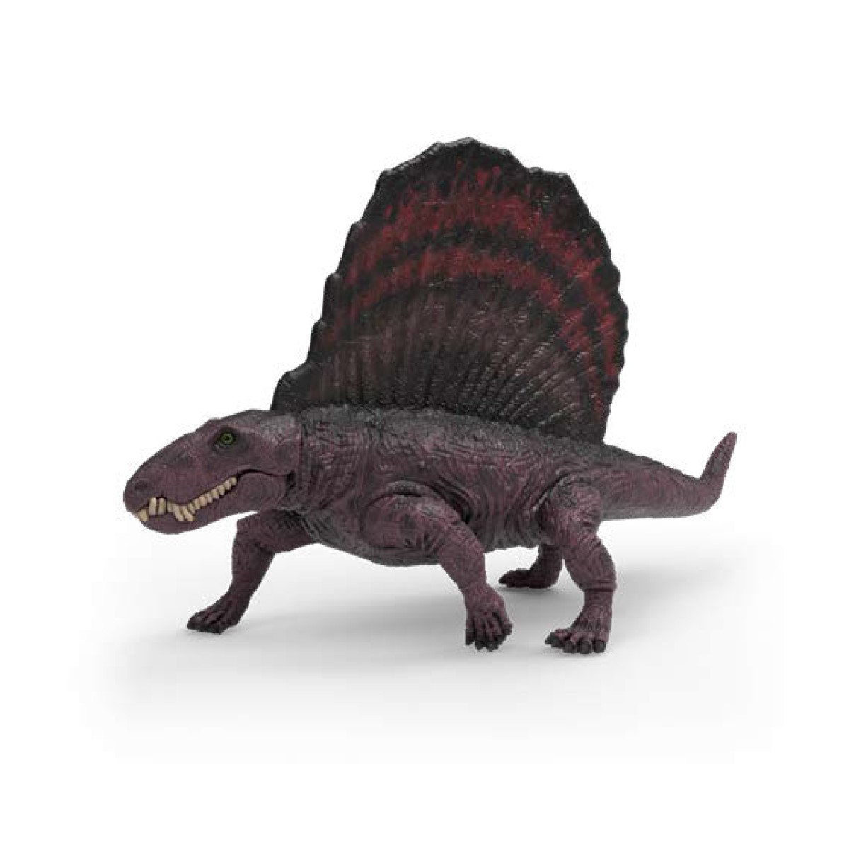 Der Dimetrodon ist wirklich ein spannender Dinosaurier! Seine rote Haut mit den schwarzen Flecken fällt schon von Weitem auf. Besonders auffällig ist das grosse Segel auf seinem Rücken, das aussieht wie ein Fächer. Es ist rot und schwarz gemustert, fast wie Flammen. Mit diesem Segel und seinem kräftigen Kiefer kann der Dimetrodon sich gut gegen Angreifer verteidigen. Echt beeindruckend!