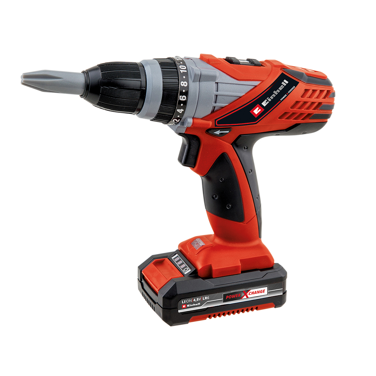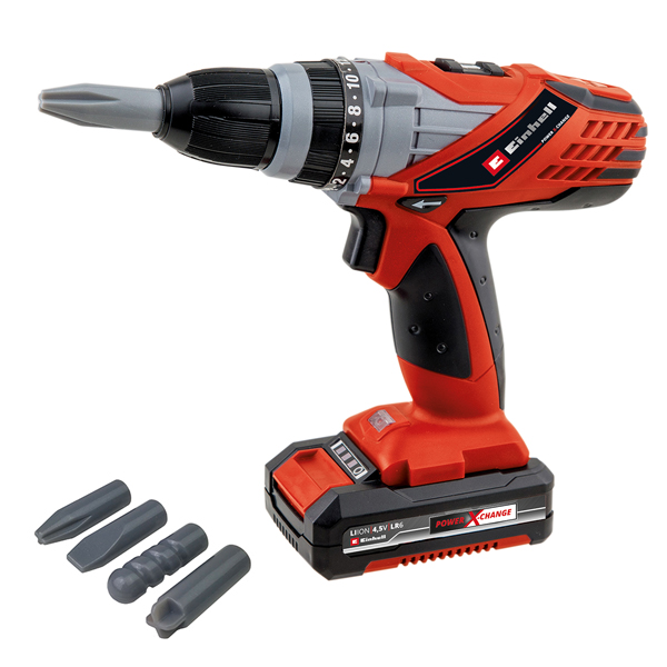 Einhell Akku-Bohr-Schrauber KIDS, Links- und Rechtslauf, 4 Einsätze, austauschbare Batterieeinheit.