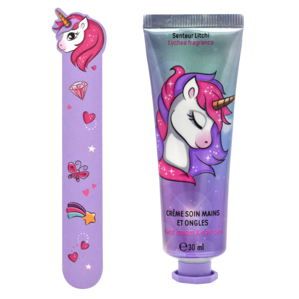 Einhorn Geschenkset mit Hand- und Nagelcrème mit Feile.