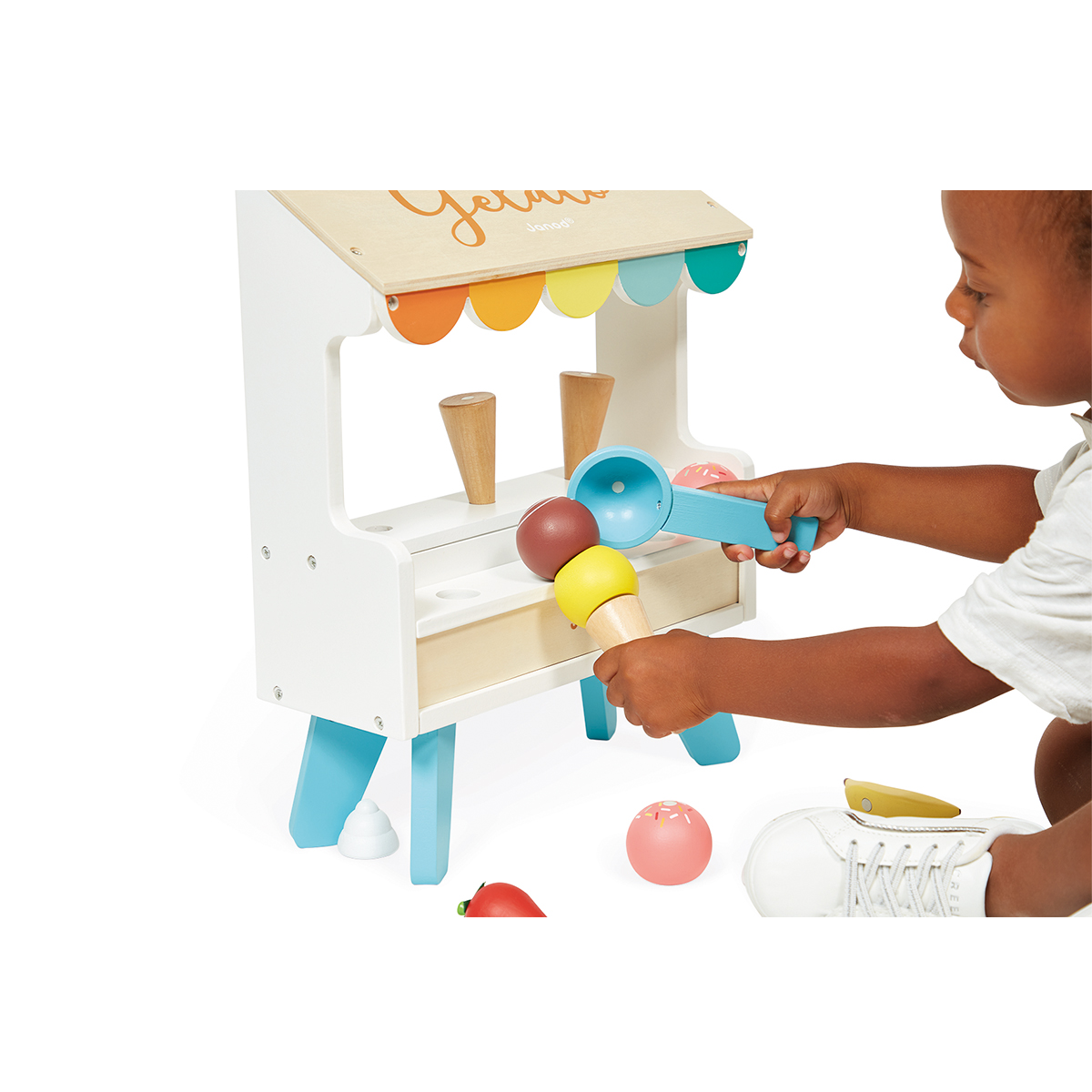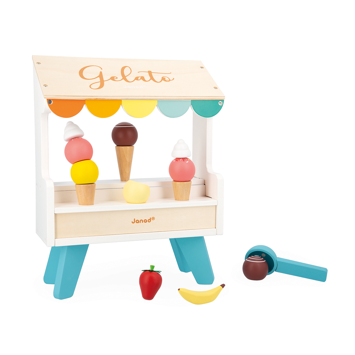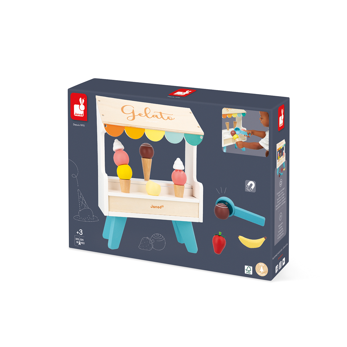 Vanille, Erdbeere oder Schokolade? Lasst euch von einem leckeren Eis in Versuchung führen… Für jeden Geschmack ist eins dabei! Ein toller Stand, mit dem Ihr Kind jede Menge leckeres Eis machen kann. Er besteht aus 3 Eistüten, 6 Kugeln, die verschiedene Geschmacksrichtungen darstellen, 2 Früchten und Schlagsahne zur Dekoration, alle magnetisch, und einem magnetischen Löffel, um die Eiskugeln zu handhaben. Ihr Kind kann schöne Eiskreationen zusammenstellen und Sie werden Lust bekommen, alle Sorten auszuprobieren. Entwickelt die Vorstellungskraft und das Spielen mit anderen und fördert die Kreativität. Spielzeugnachbildung aus Holz für Kinder ab 3 Jahren.