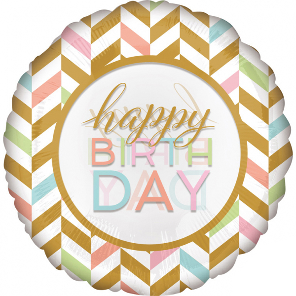 Folienballon rund, Happy Birthday. Grösse: 71x71cm. Ein strapazierfähiger Folienballon mit einem selbstschliessenden Automatikventil. Der Ballon hat ein Patentventil eingebaut und kann mehrfach aufgeblasen werden.