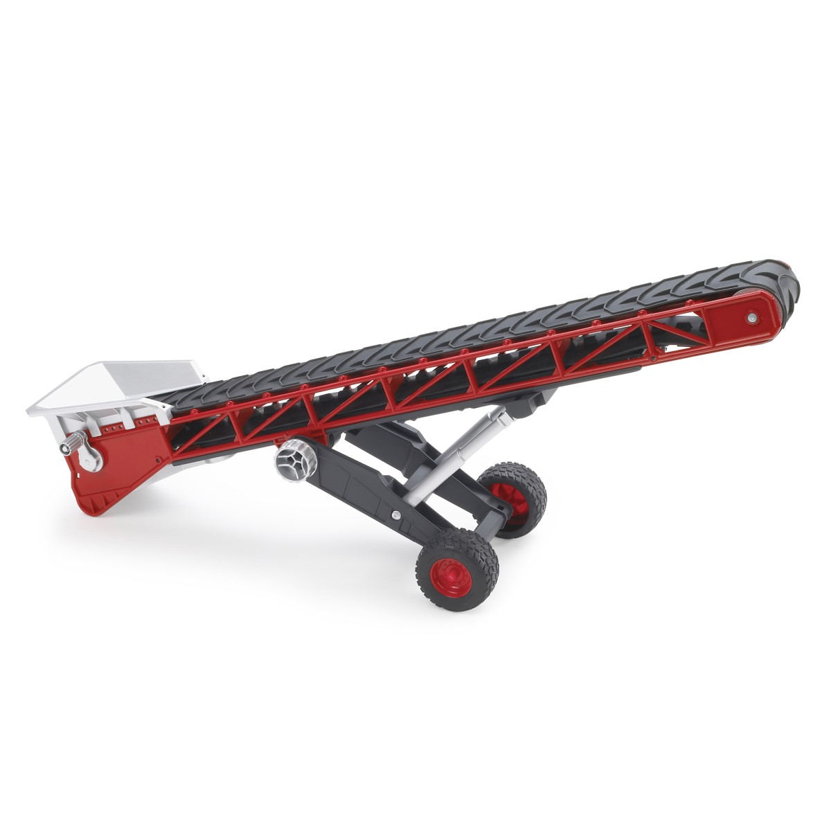 Förderbänder erleichterten den Menschen besonders den Transport von Schüttgütern wie Sand, Kies, usw. Im landwirtschaftlichen Bereich werden sie auch für Strohballen, Holzscheide, also Festkörpern, gern benutzt. Um unseren kleinen Baumeistern und Landwirten die schwere Arbeit einfacher zu machen bringt BRUDER ein modernes Förderband auf den Markt. Das Arbeitsgerät besticht durch seine gelungene Optik und den mittels Drehknöpfen und Kurbel sehr einfach zu bedienenden Hub- und Fördermechanismen. Damit können Heuballen auf den Wagen transportiert und in die Scheune eingebracht werden, Sand oder Steinchen auf LKWs befördert aber auch entladen werden. Das Förderband lässt sich an alle BRUDER Zugfahrzeuge wie Traktoren, Unimogs, LKWs inkl. dem Sprinter aber auch an Baufahrzeuge, die über eine Anhängerkupplung verfügen, anhängen.