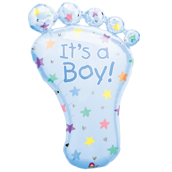 Folienballon als Fuss It's a Boy. Grösse: 82cm. Ein strapazierfähiger Folienballon mit einem selbstschliessenden Automatikventil. Der Ballon hat ein Patentventil eingebaut und kann mehrfach aufgeblasen werden.