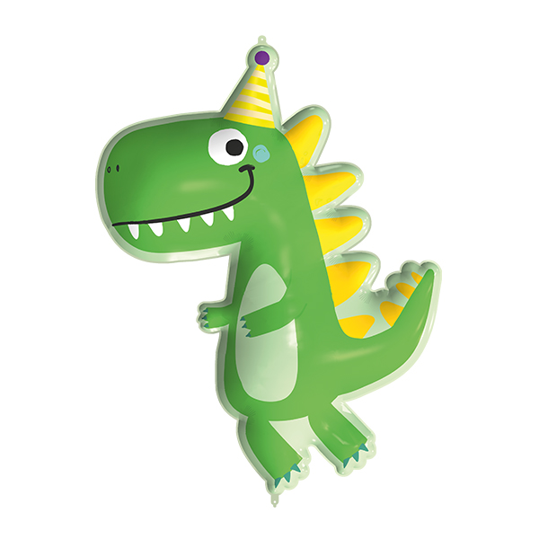 Folienballon Dinosaur. Ein strapazierfähiger Folienballon mit einem selbstschliessenden Automatikventil. Der Ballon hat ein Patentventil eingebaut und kann mehrfach aufgeblasen werden.