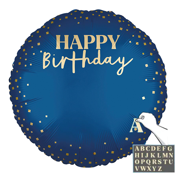 Folienballon Personalisiert Blau. Ein strapazierfähiger Folienballon mit einem selbstschliessenden Automatikventil. Der Ballon hat ein Patentventil eingebaut und kann mehrfach aufgeblasen werden.