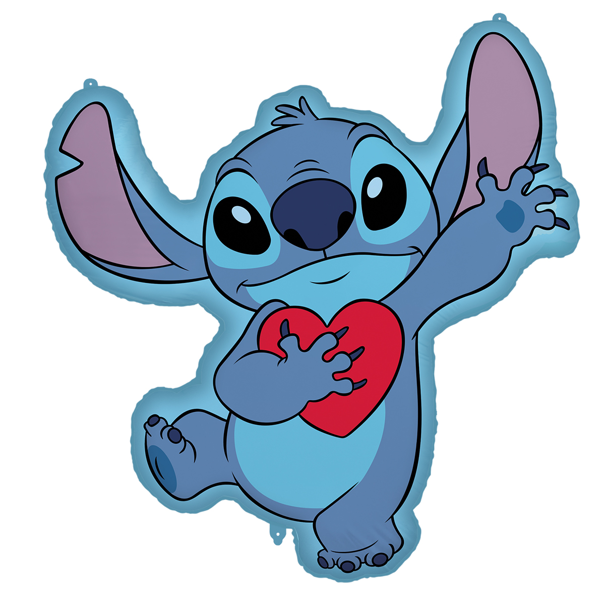 Folienballon Stitch 76x88cm. Ein strapazierfähiger Folienballon mit einem selbstschliessenden Automatikventil. Der Ballon hat ein Patentventil eingebaut und kann mehrfach aufgeblasen werden.