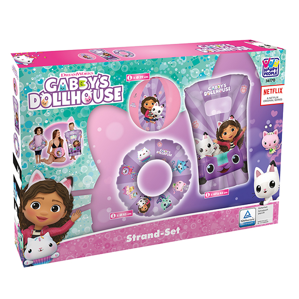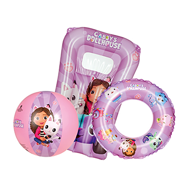 Gabby's Dollhouse Strandset 3-teilig bestehend aus: Wasserball, Schwimmring und Kindermatratze.
