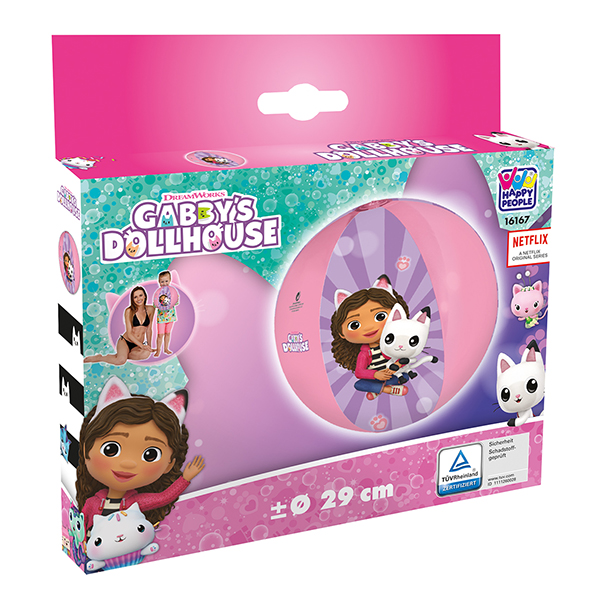 Wasserball mit lustigem Motiv aus Gabby's Dollhouse. Der Wasserball mit einem Durchmesser von 29cm ist geeignet für Ballspiele im und am Wasser.