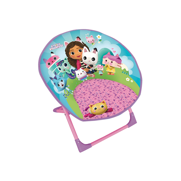 Nehmen Sie Platz in diesem bequemen Sessel mit dem Motiv von Gabby's Dollhouse! Dank seiner abgerundeten, umhüllenden Form ist dieser Sessel ideal, um Folgen seiner Lieblingszeichentrickserie anzuschauen, sich zu entspannen oder sein Lieblingsbuch zu lesen. Praktisch: Der Mondstuhl Gabby's Dollhouse von Jemini lassen sich leicht zusammenklappen und transportieren. Masse im aufgeklappten Zustand: L 54 x T 42 x H 47 cm. Stahlgestell, Stoff aus 100 % Polyester und Kunststoffteile aus Polyethylen.