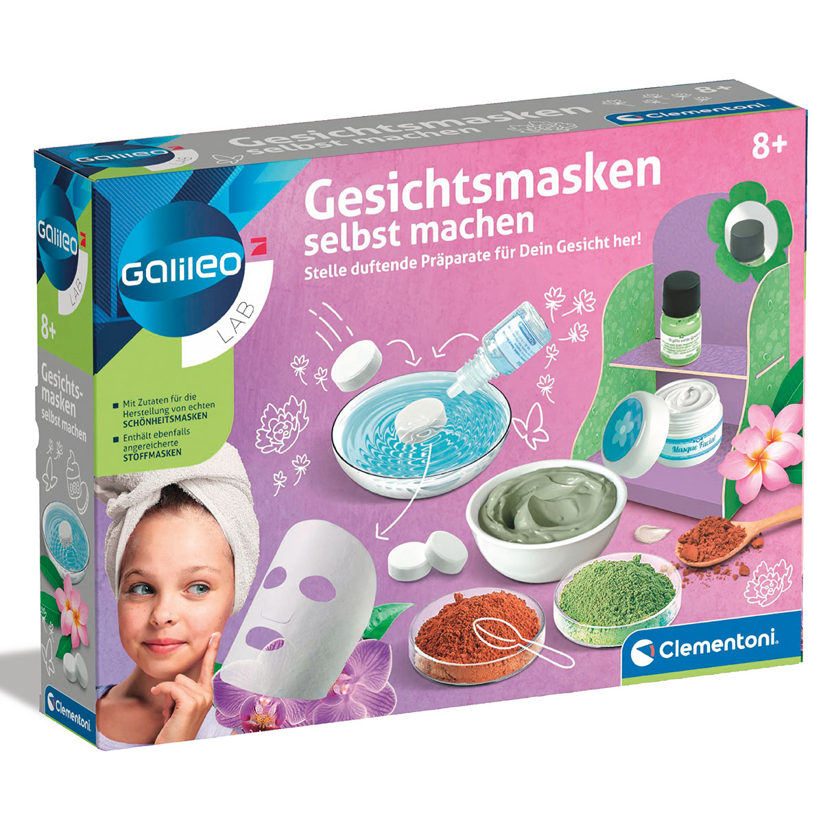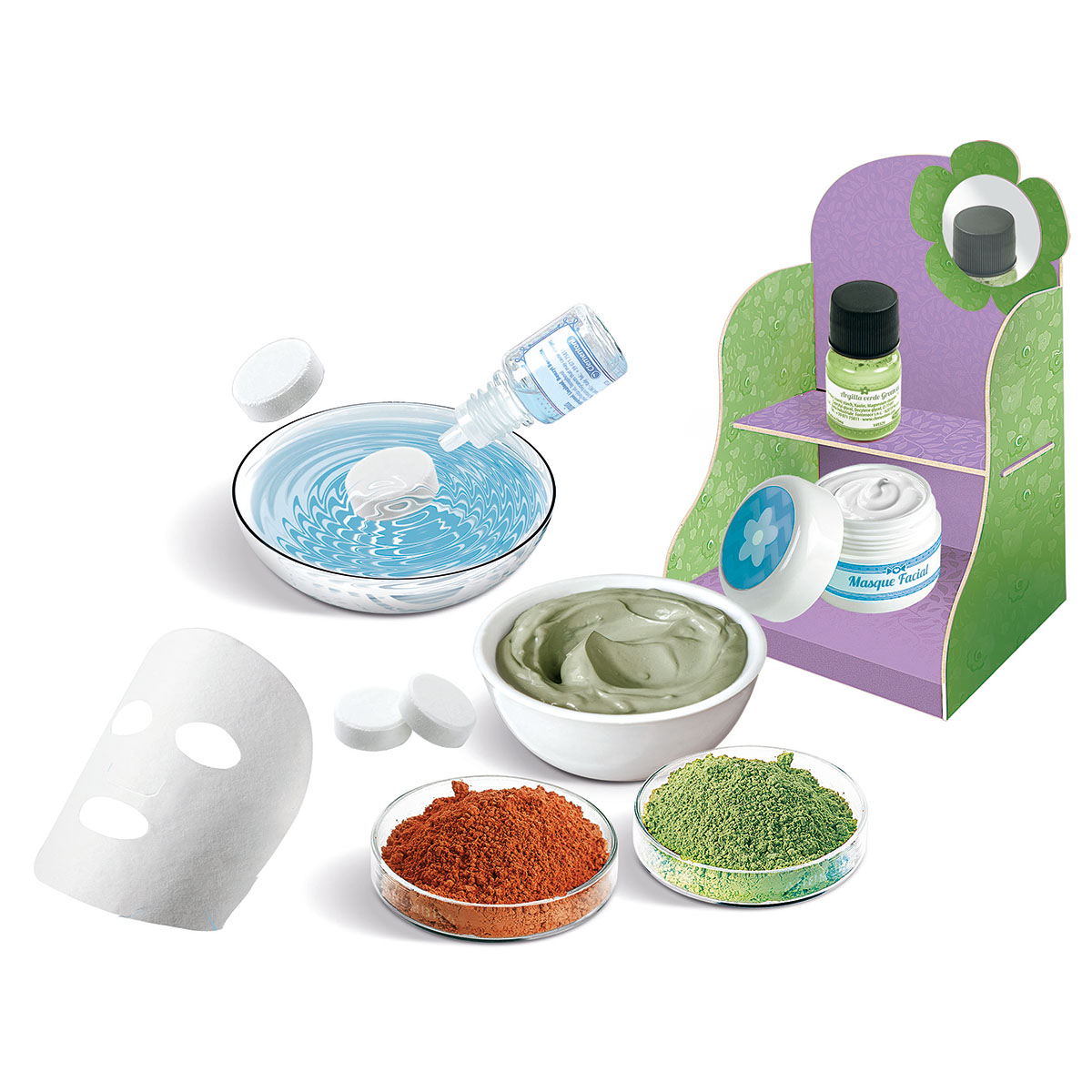Gesichtsmasken sebst machen. Ein originelles und unterhaltsames wissenschaftliches Set zur Erstellung natürlicher und feiner Schönheitsmasken. Das Set enthält alle Zutaten für die Herstellung von echten Schönheitsmasken, einschliesslich grünem Ton, vulkanischem Ton und vielen frischen und wohlriechenden Düften. Das Spiel enthält auch angereicherte Stoffmasken für eine beruhigende, erfrischende und aufhellende Behandlung. Das reich bebilderte Handbuch führt die Mädchen Schritt für Schritt in die Entwicklung angenehmer Schönheitsbehandlungen für ihr Gesicht ein.