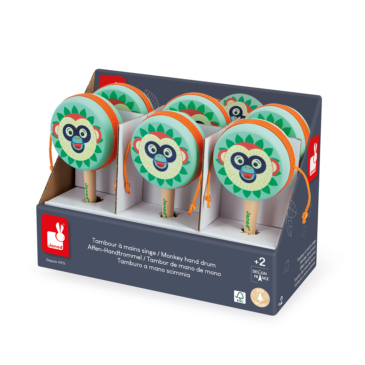 Mit dieser Handtrommel wird Ihr Kind ein Händchen für Musik entwickeln! Einfach den Griff in die Hand legen und hin und her rollen. Langsam für langsame Klänge und schneller für schnelle, rhythmische Klänge. So viele Entdeckungen für Ihr Kind! Musik-Rollenspielzeug aus Holz für Kinder ab 2 Jahren.