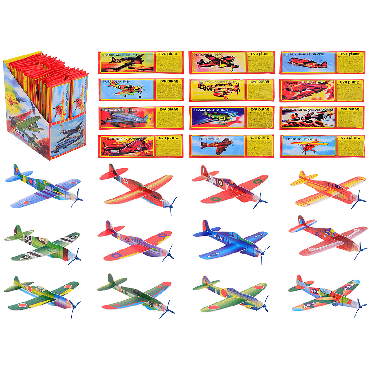 Gleitflieger mit Propeller 19cm, assortiert, aus Styropor.