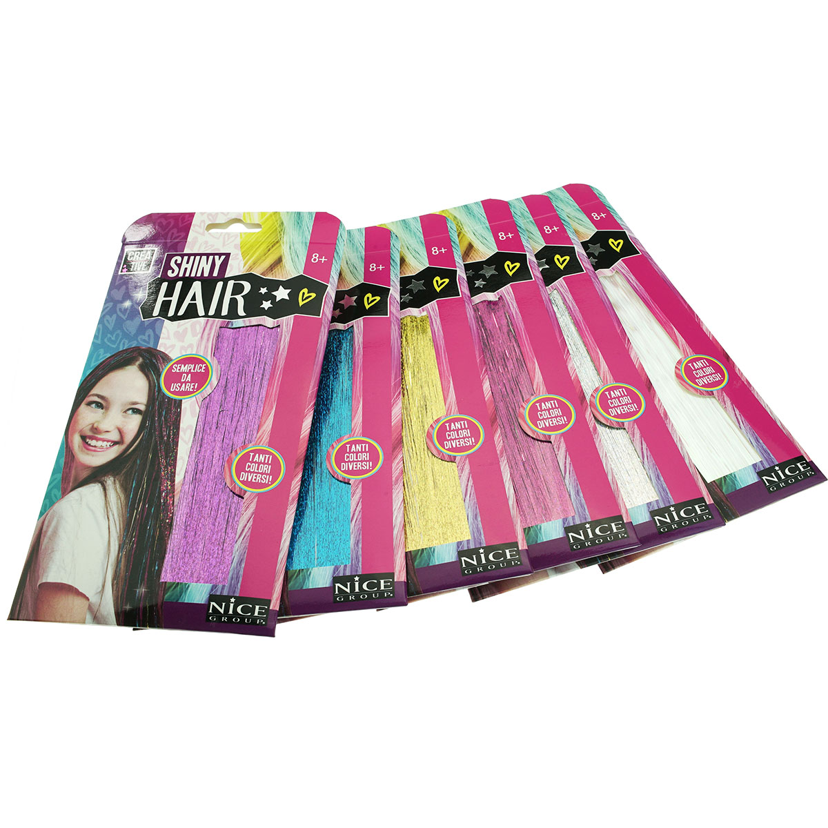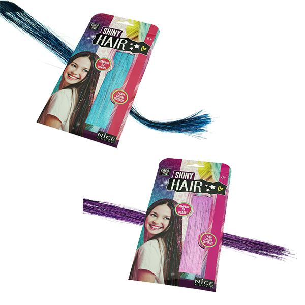 Glitzernde, farbige Strähnen zur Dekoration von dem Haar. Sie sind leicht anzubringen, können mehrere Tage halten und halten auch Hitzequellen wie Föhn und Haarglätteisen stand. Einfach zu befolgende Anwendungshinweise.